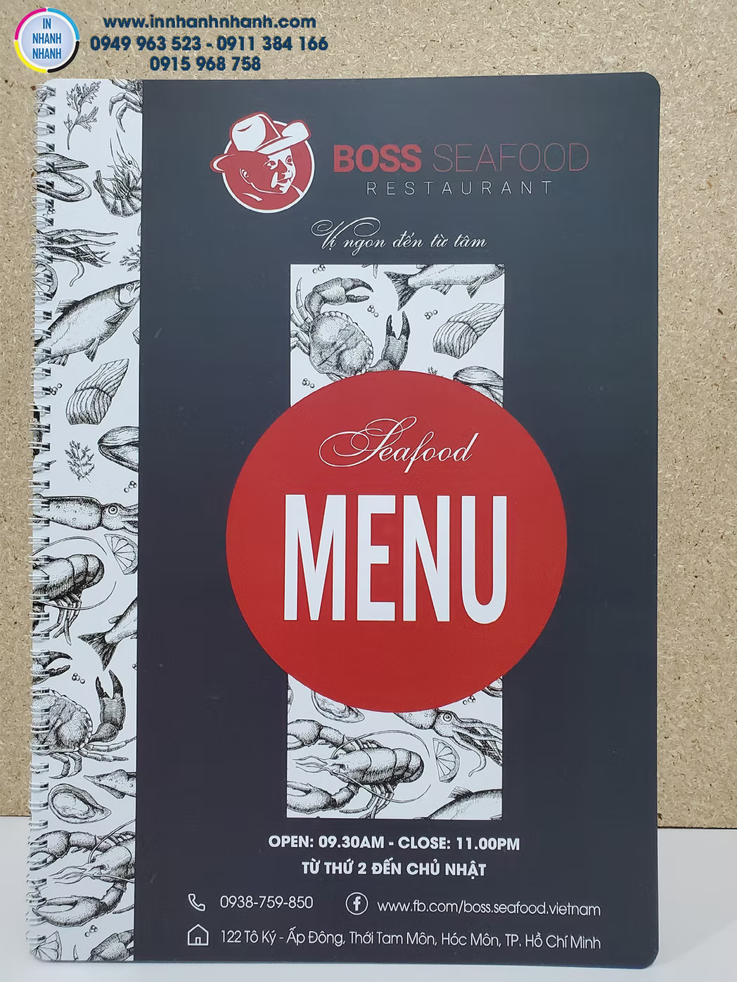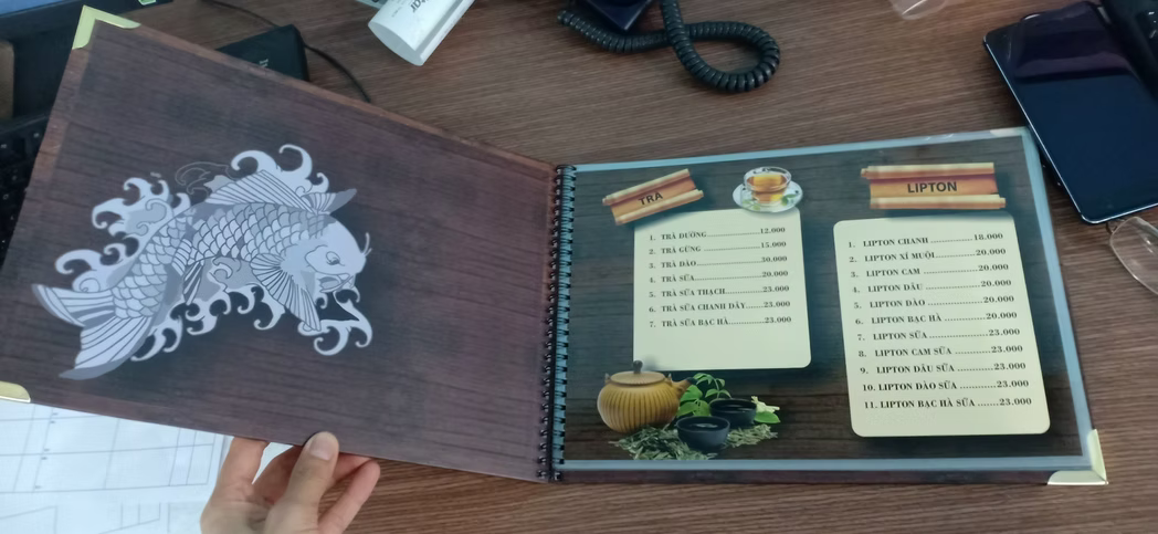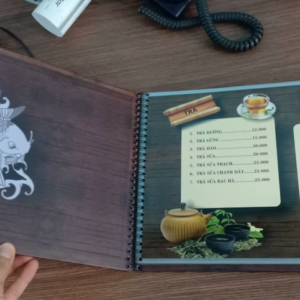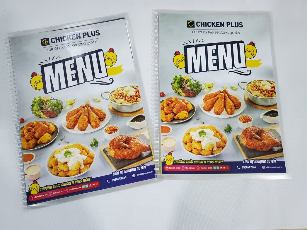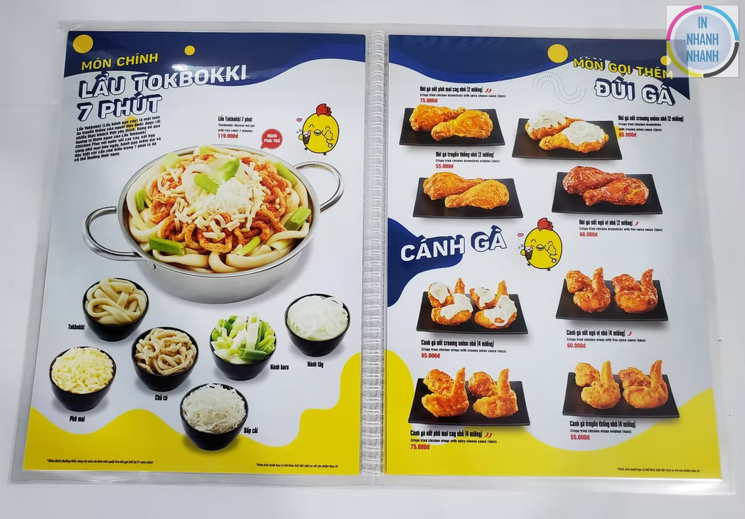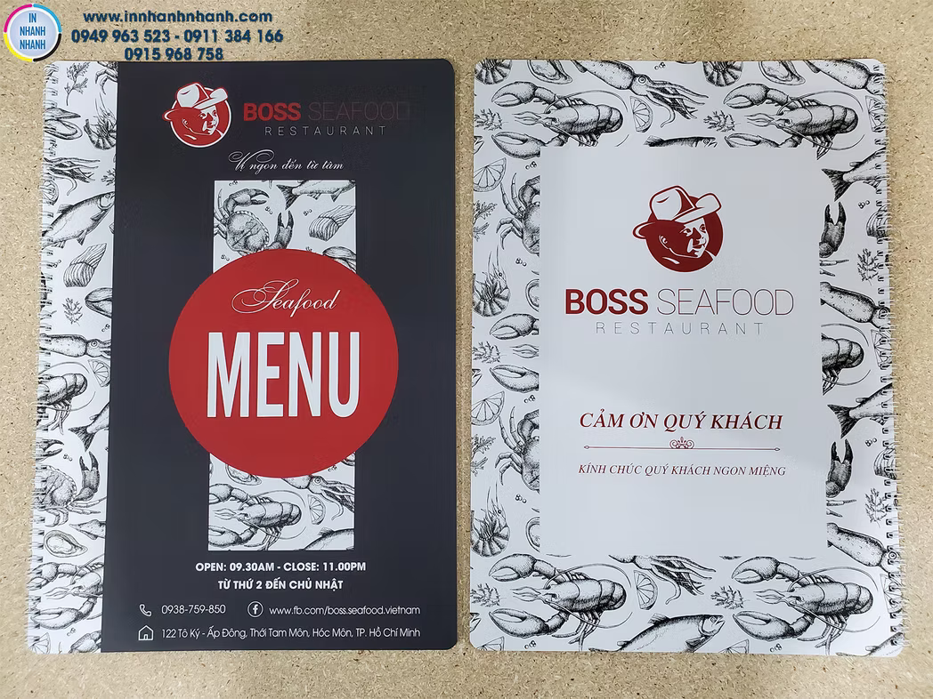Dịch vụ in menu, thực đơn giá rẻ, đa dạng chất liệu như nhựa PVC, giấy, bìa cứng, bìa da, và gỗ. Liên hệ In Nhanh Nhanh để được báo giá chi tiết!
