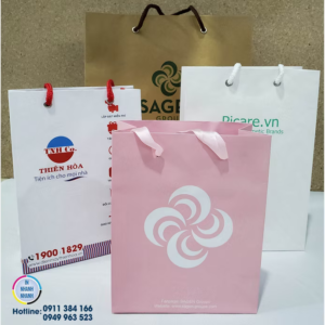 Túi giấy đứng, In offset 4 màu, C300, cán màng bóng hoặc mờ, bế dán xỏ dây dù thành phẩm, giá đã có VAT: Ghi chú: giá trên là giá tham khảo và có thể điều chỉnh tùy thuộc vào giá giấy ở thời điểm hiện tại.