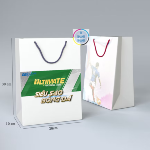 In túi giấy Mỹ Thuật: Nếu bạn đang tìm kiếm một chất liệu túi giấy cao cấp và sang trọng, thì giấy mỹ thuật là lựa chọn tốt nhất. Giấy mỹ thuật có bề mặt láng mịn hoặc hơi sần và có thể được kết hợp với nhiều kỹ thuật tráng nhũ, cán gân,… để tạo ra hiệu ứng đặc biệt cho túi giấy. Việc in ấn trên túi giấy mỹ thuật tạo ra sản phẩm đẹp mắt, giúp làm nổi bật thông tin về thương hiệu, sản phẩm,… để thu hút sự chú ý của khách hàng.